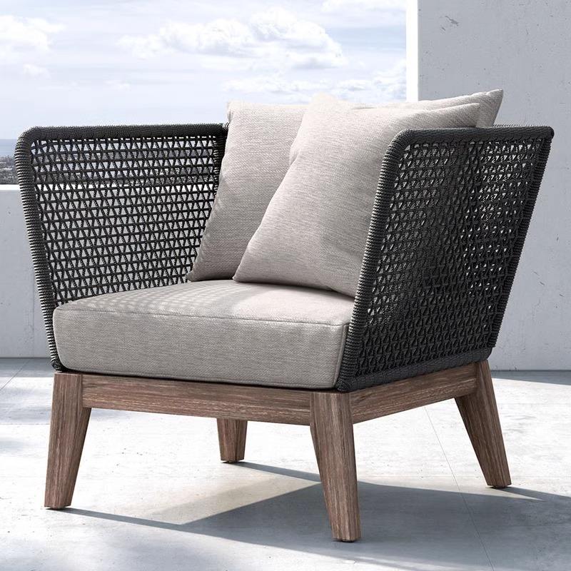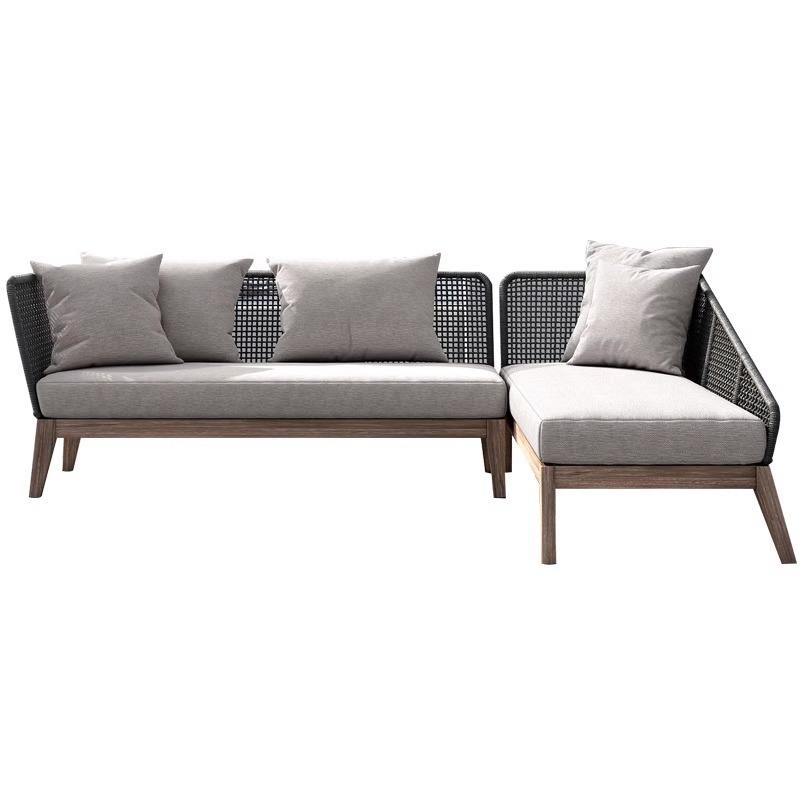 Ensemble de canapés d'extérieur en rotin en forme de L, structure en teck et aluminium, mobilier de jardin imperméable, design nordique, pour villa et cour, loisirs