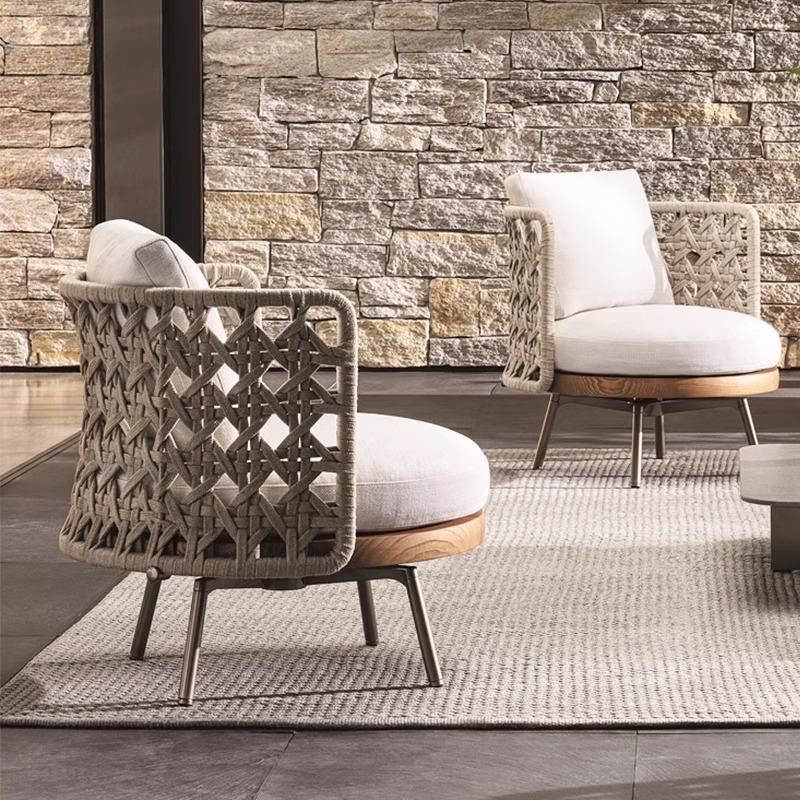Ensemble de salon de jardin en rotin, table et chaises en teck, design contemporain, imperméable, 3 places