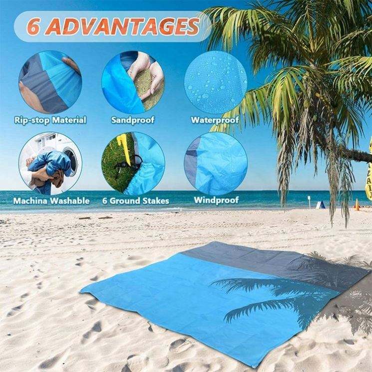 Tapis de plage pliable, léger, imperméable, anti-sable, pour le camping, les pique-niques et les voyages en plein air