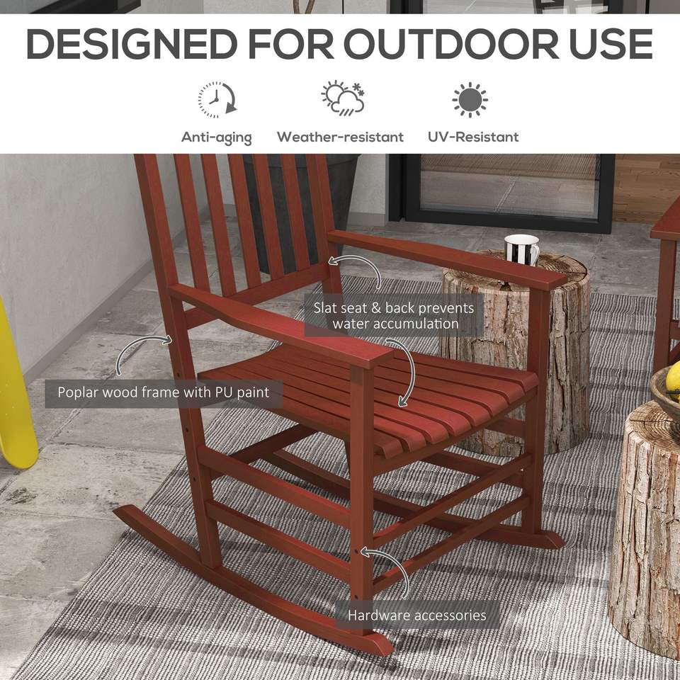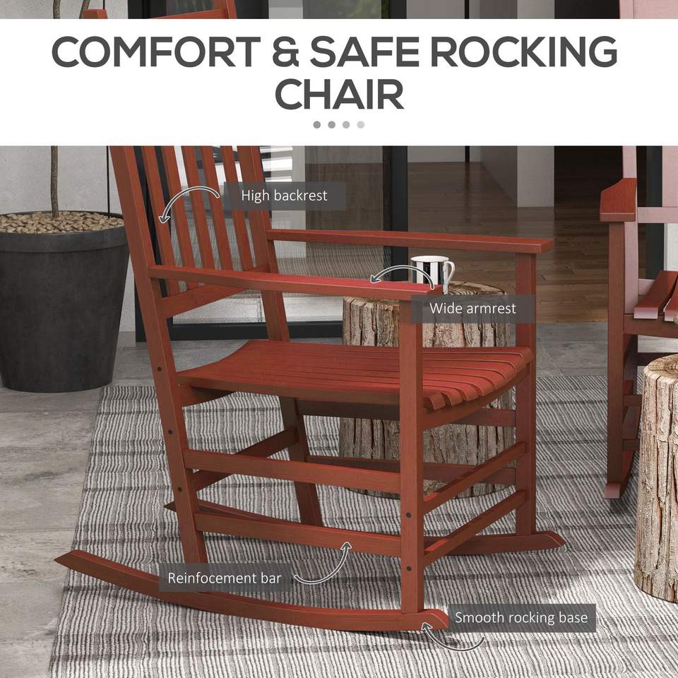 Ensemble de 2 chaises à bascule d'extérieur en bois haute densité avec courbes fluides pour patio, pelouse, jardin ou véranda