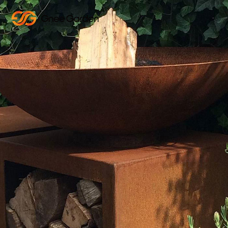 Brasero rond d'extérieur Foyer Barbecue simple avec fonction de chauffage en acier corten pour bois de chauffage