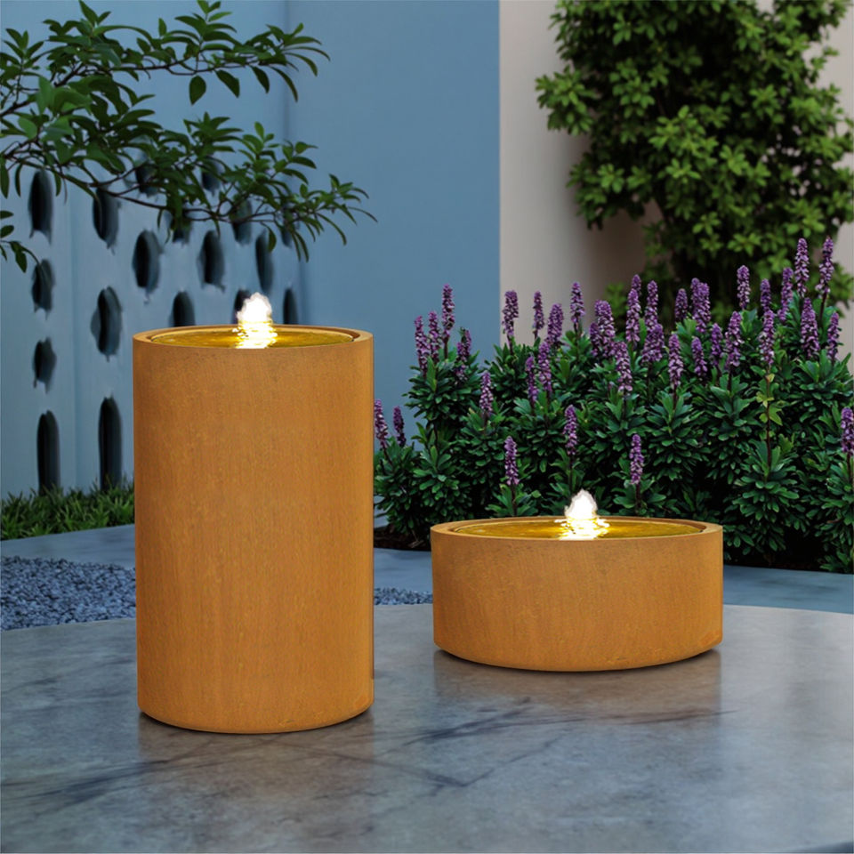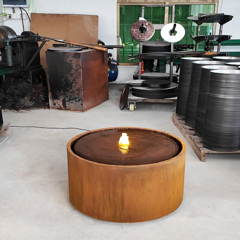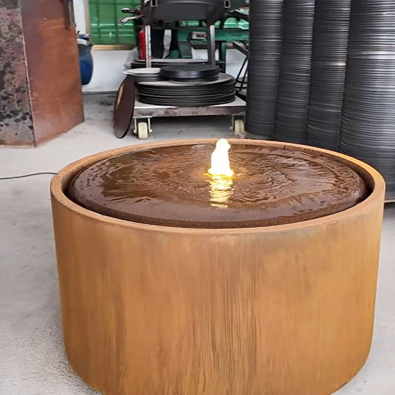 Table à eau ronde extérieure en acier corten Surface antirouille Fontaine de jardin avec cascade Étang Fontaine à eau