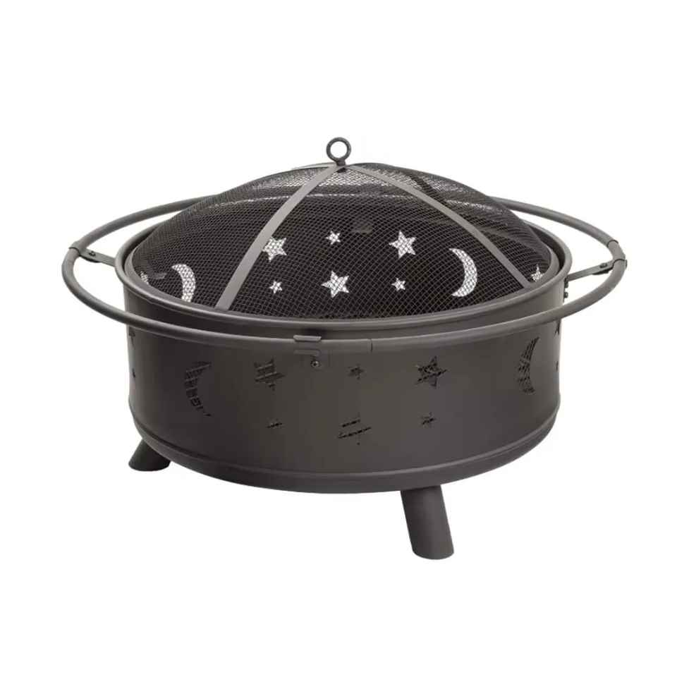 Brasero rond en acier pour extérieur avec écran anti-étincelles, chauffage de patio à bois, foyer décoratif pour jardin et cour