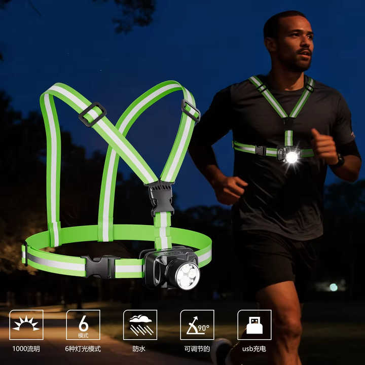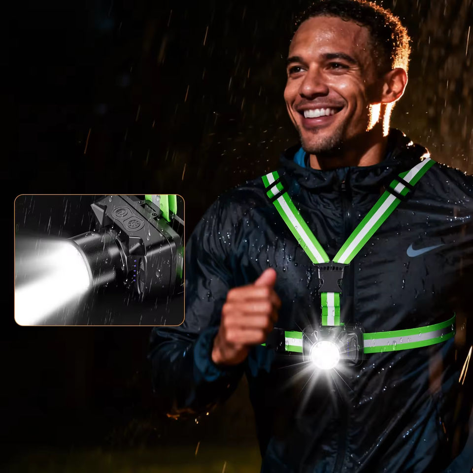 Lampe de Poitrine LED 1000LM pour Course en Extérieur et Cyclisme, Sangle Réglable, IP20, Alimentation Rechargeable/Batterie USB, Idéale pour la Nuit en Montagne