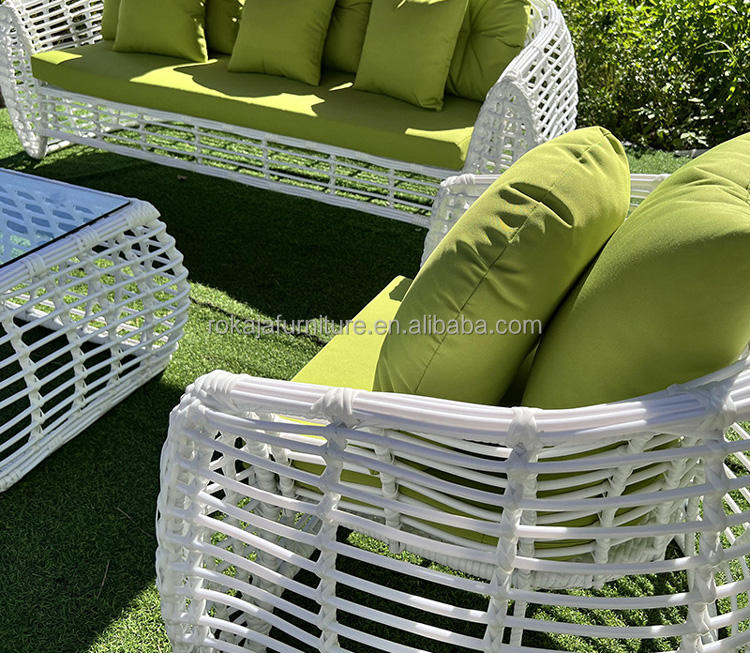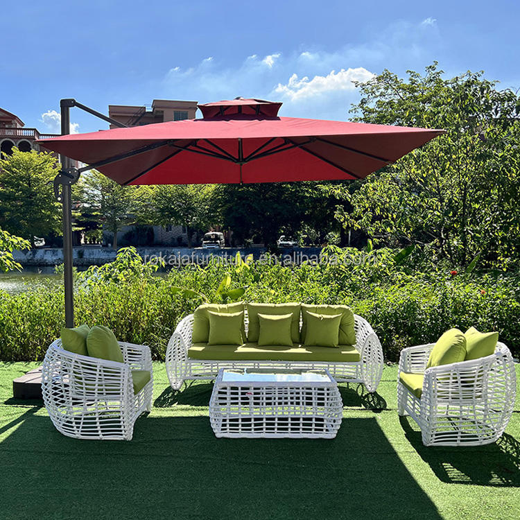 Canapé d'extérieur en rotin blanc simple et créatif pour jardin, patio, extérieur creux, meubles à pendule, canapé en rotin simple imperméable à l'eau et au soleil