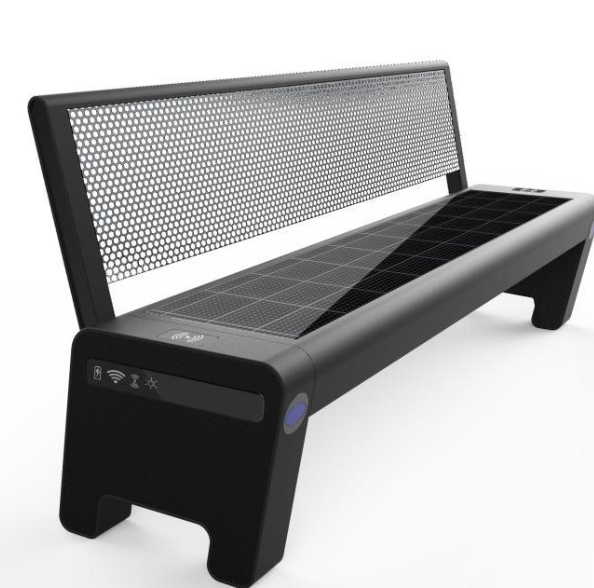 Banc intelligent d'extérieur avec recharge solaire intégrée