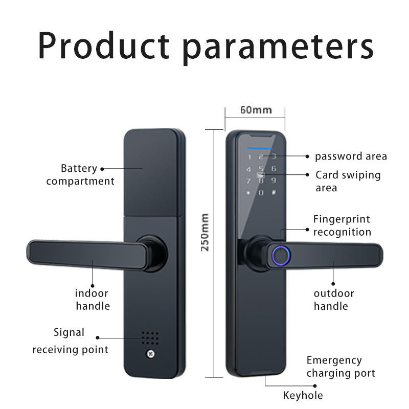 Serrure de porte numérique intelligente extérieure avec WiFi, aluminium, SDK IP, dotée d'un accès intelligent par carte-clé, sécurisée pour les portes en bois