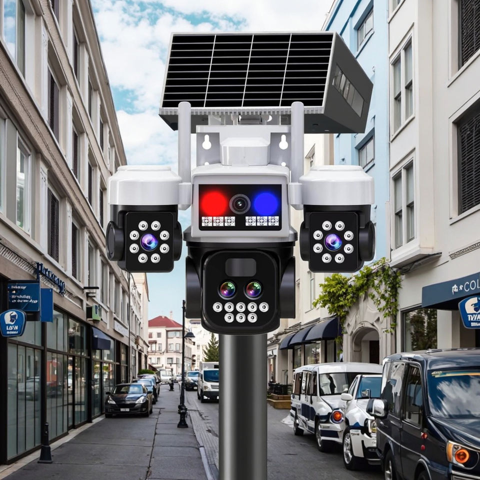 Boule solaire extérieure de caméra de 3 lentilles 6MP 4G surveillance double lumière accès à distance nocturne polychrome
