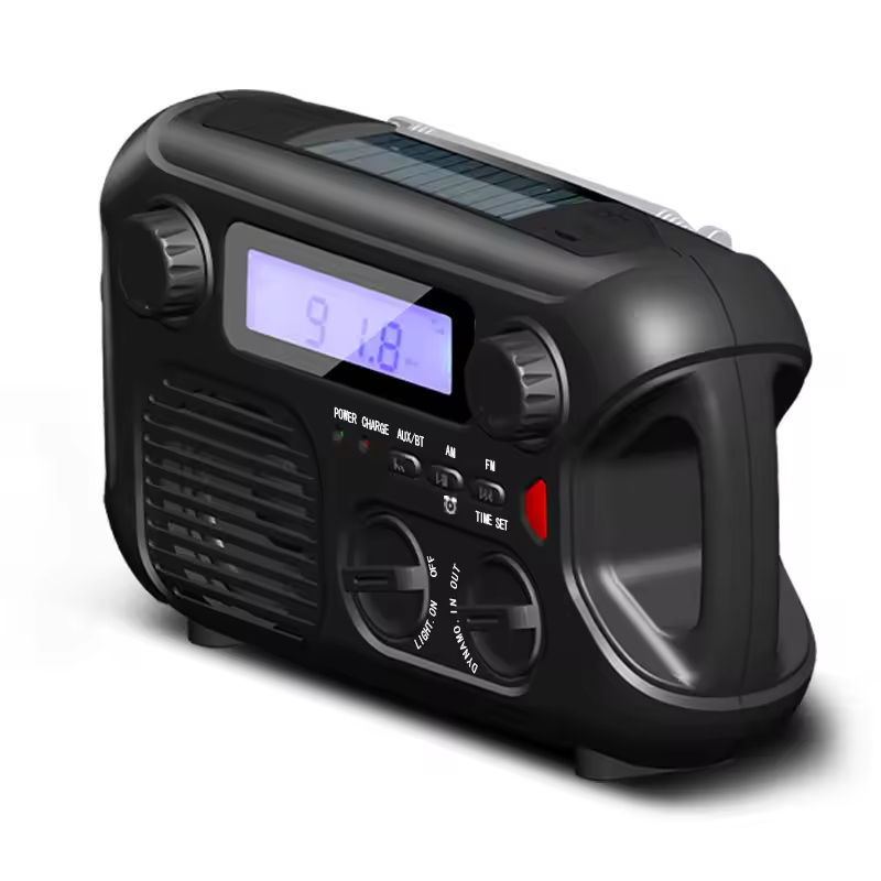 Radio solaire d'urgence portable avec manivelle, haut-parleur Bluetooth 5000 mAh, lampe de secours et lampe torche
