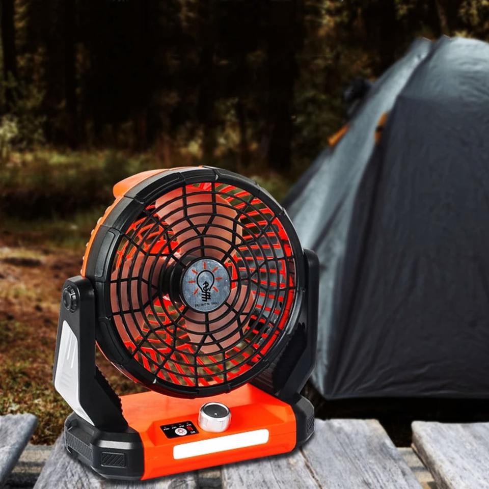 Ventilateur solaire d'extérieur, rechargeable par USB, lumière d'urgence portable avec crochet, ventilateur silencieux pour le camping, lumière, batterie de grande capacité