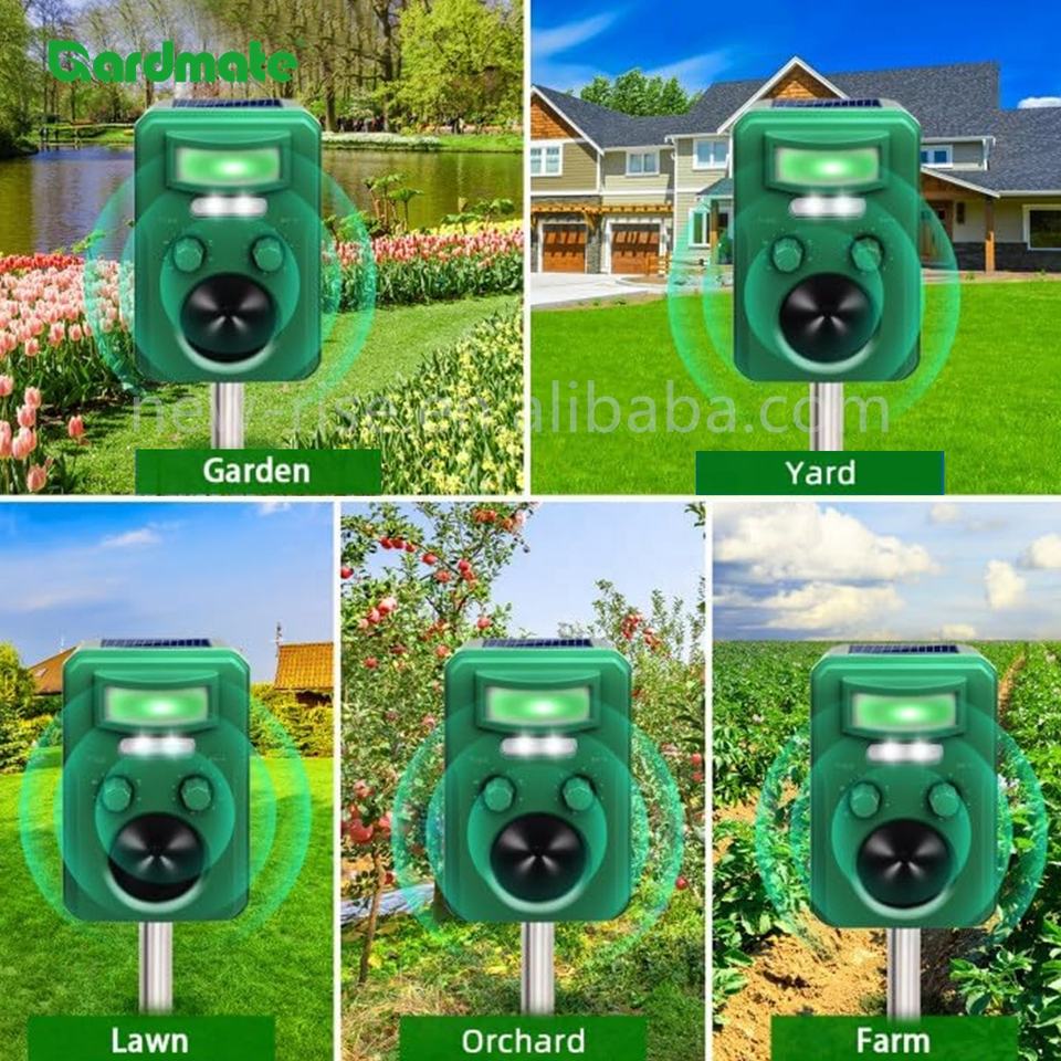 Répulsif pour animaux d'extérieur à énergie solaire avec son ultrasonique pour la ferme, la pelouse, le jardin et les animaux.