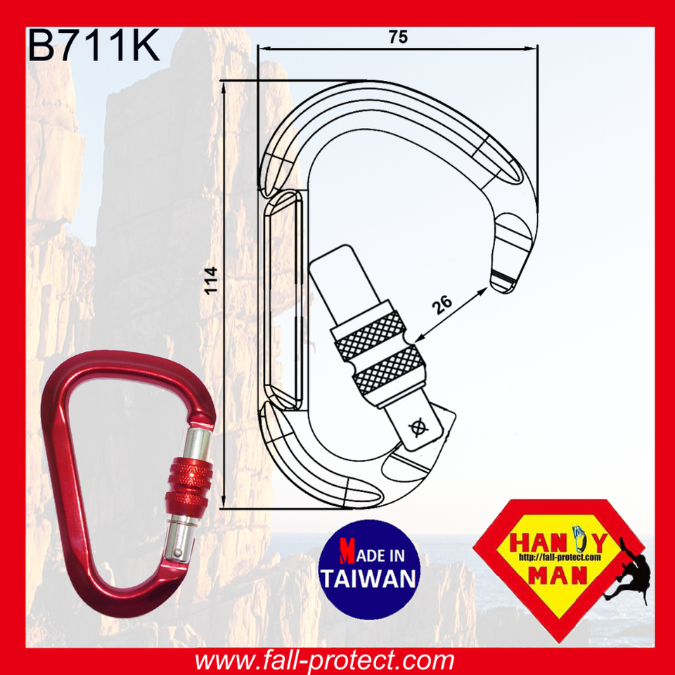 Outdoor Sports 26kN HMS Type Screw Gate Hook Rescue Mountain Climbing Aluminum Carabiner