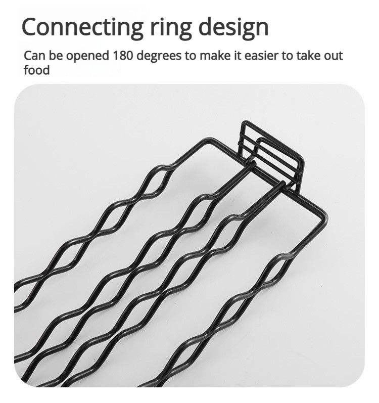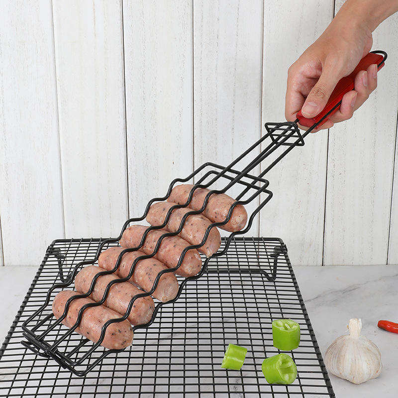 Pince à barbecue d'extérieur en acier inoxydable avec long manche métallique, antiadhésive, pour hot-dogs, jambon et saucisses, avec grille pliable