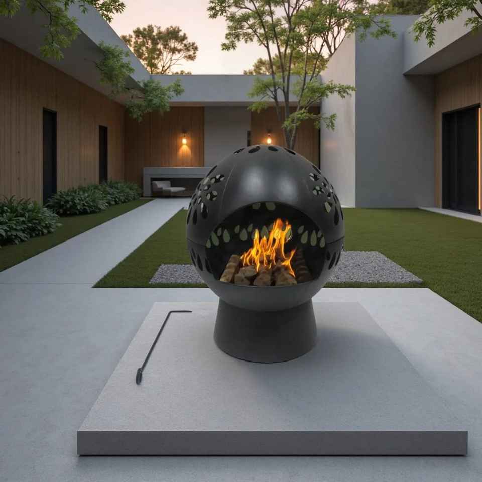 Outdoor Steel Chiminea Fire Pit Natural Gas Modern Fireplace Heater with Poker for Patio Garden Backyard Camping
