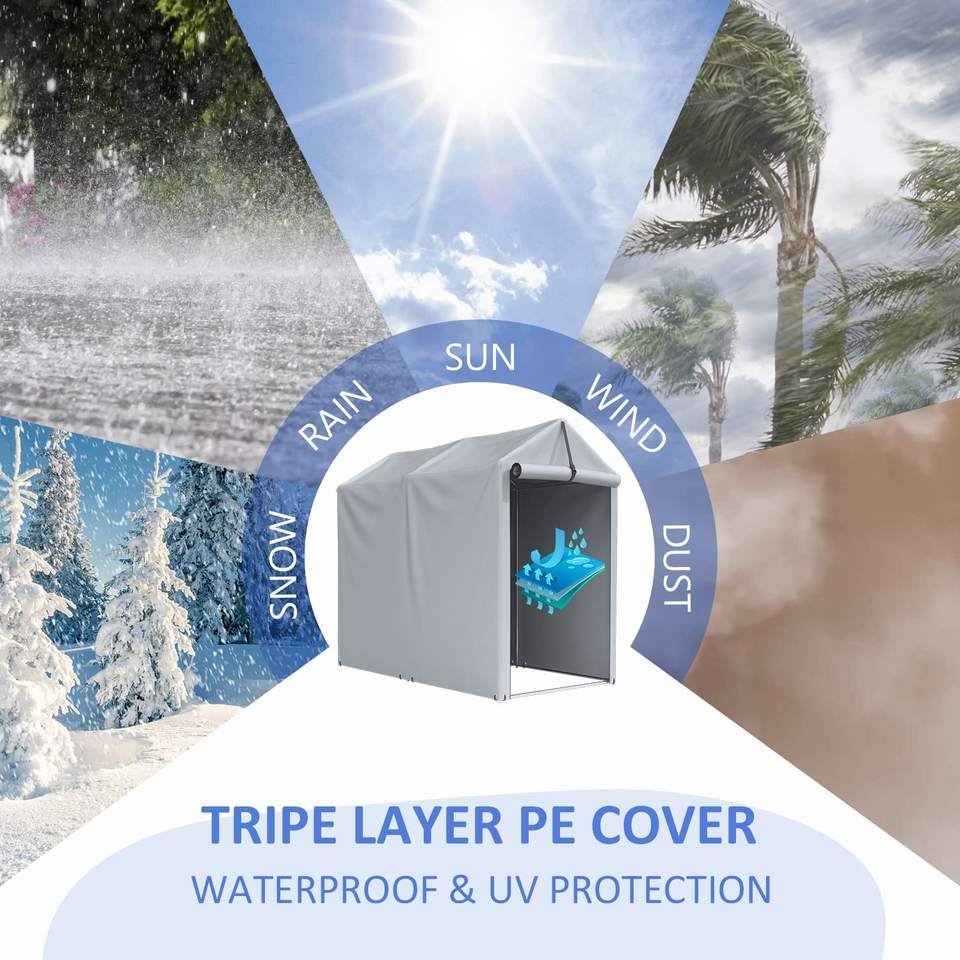 Abri de jardin extérieur 3 x 6 pieds, auvent portable, abri robuste, carport, porte à fermeture éclair enroulable, rangement pour vélo, moto, revêtement en PVC
