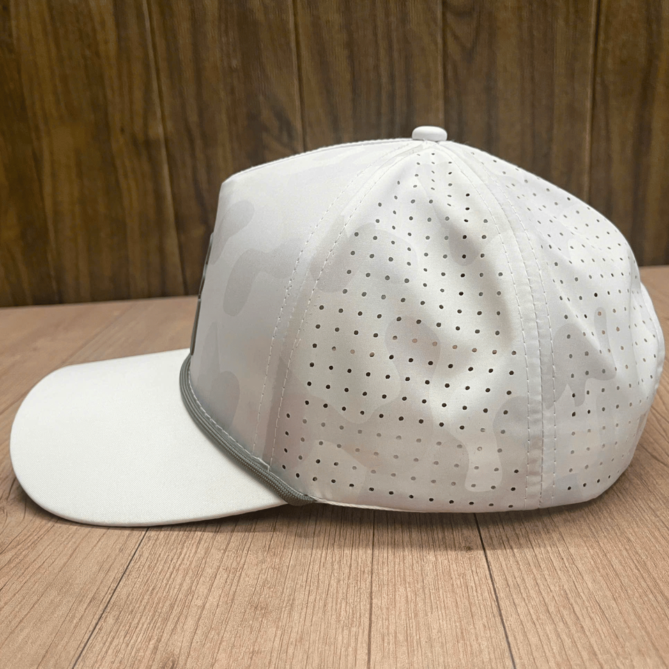 Casquette de baseball style outdoor, visière incurvée, camouflage, logo personnalisé, découpe laser, perforations, pour homme et femme, fabriquée au Vietnam.