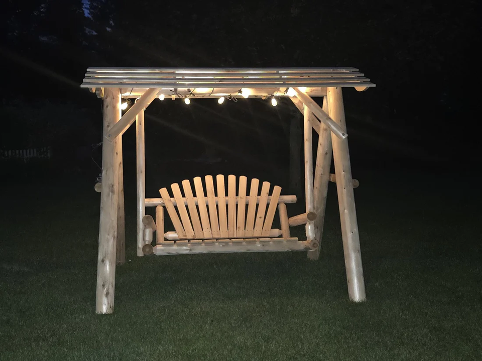 Modern Outdoor Teak Wood Swing Chair with Canopy Handcrafted Garden Bench Swing for Patio Balcony Backyard Relaxation