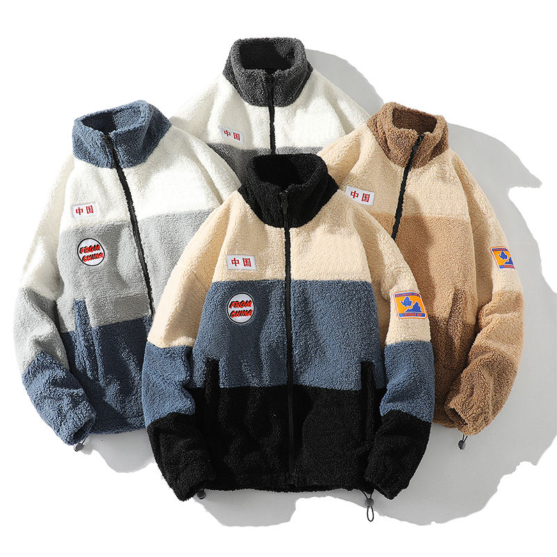 Veste en polaire épaisse d'extérieur avec col montant, fermeture éclair, coupe-vent, design coloré et texturé pour garder au chaud en hiver et au printemps
