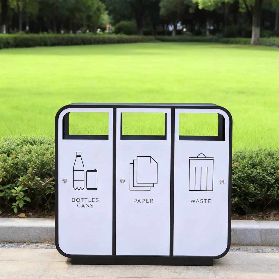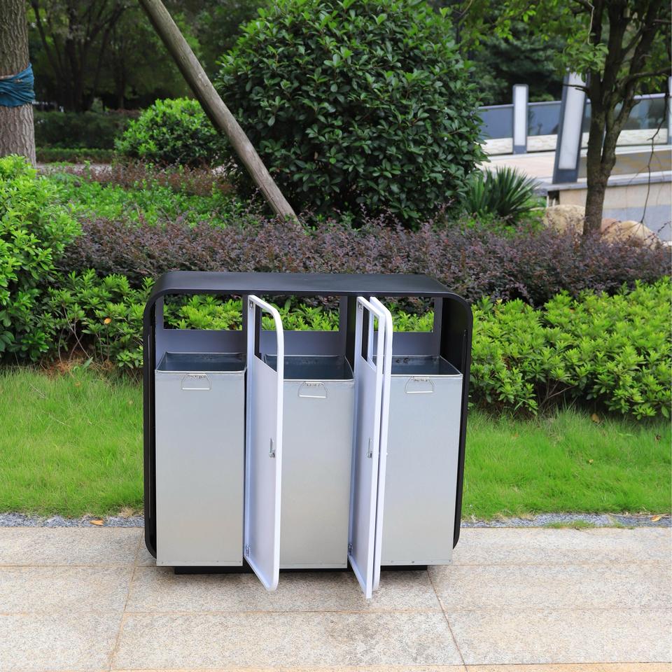 Poubelle extérieure à trois compartiments, poubelle publique commerciale, bac à tri des déchets, grande capacité, en métal