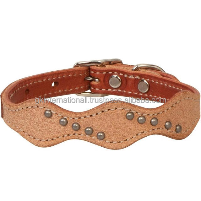 Voyage en plein air réglable entièrement cousu en cuir véritable clouté collier de chien en laiton nickelé boucle D anneau chien collier pour animaux de compagnie