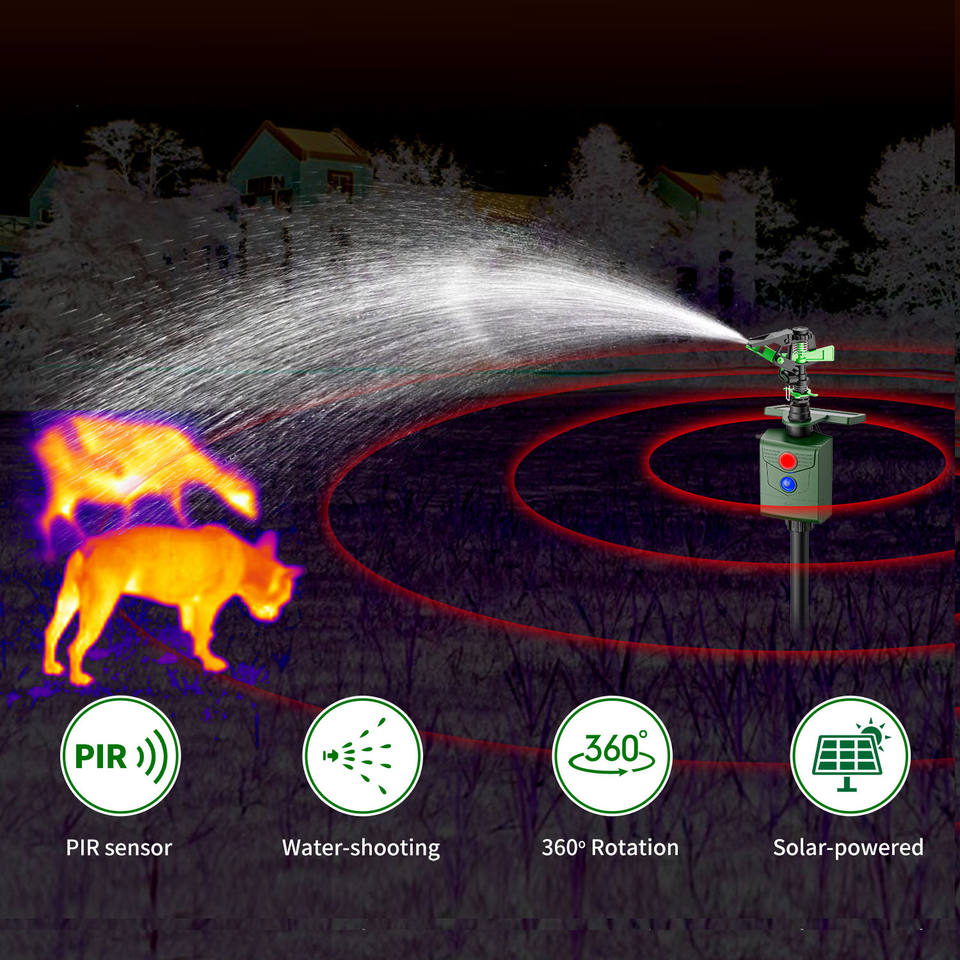 Répulsif à ultrasons pour animaux d'extérieur, rotation à 360°, activation par mouvement, arroseur de jardin, répulsif pour cerfs à ultrasons