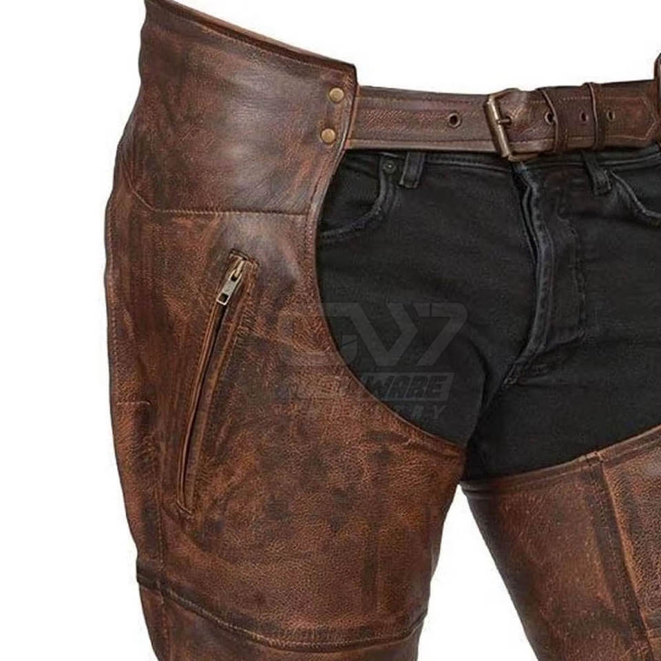 Utilisation à l'extérieur Chaps en cuir respirant de couleur unie Chaps en cuir délavé pour hommes Vente à chaud Chaps en cuir