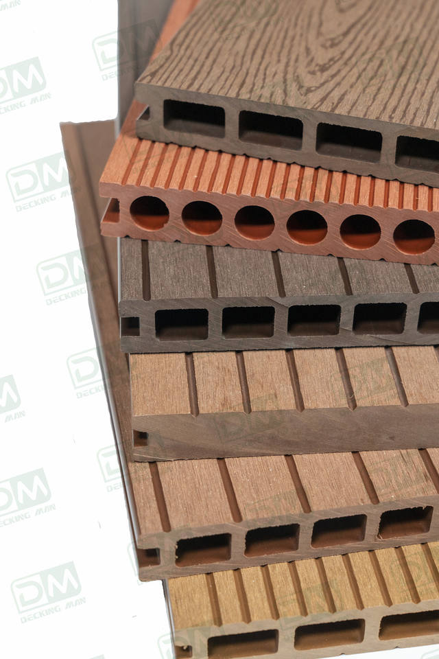 Planches de terrasse extérieures rainurées et creuses en composite bois-plastique (WPC) modernes pour usage extérieur