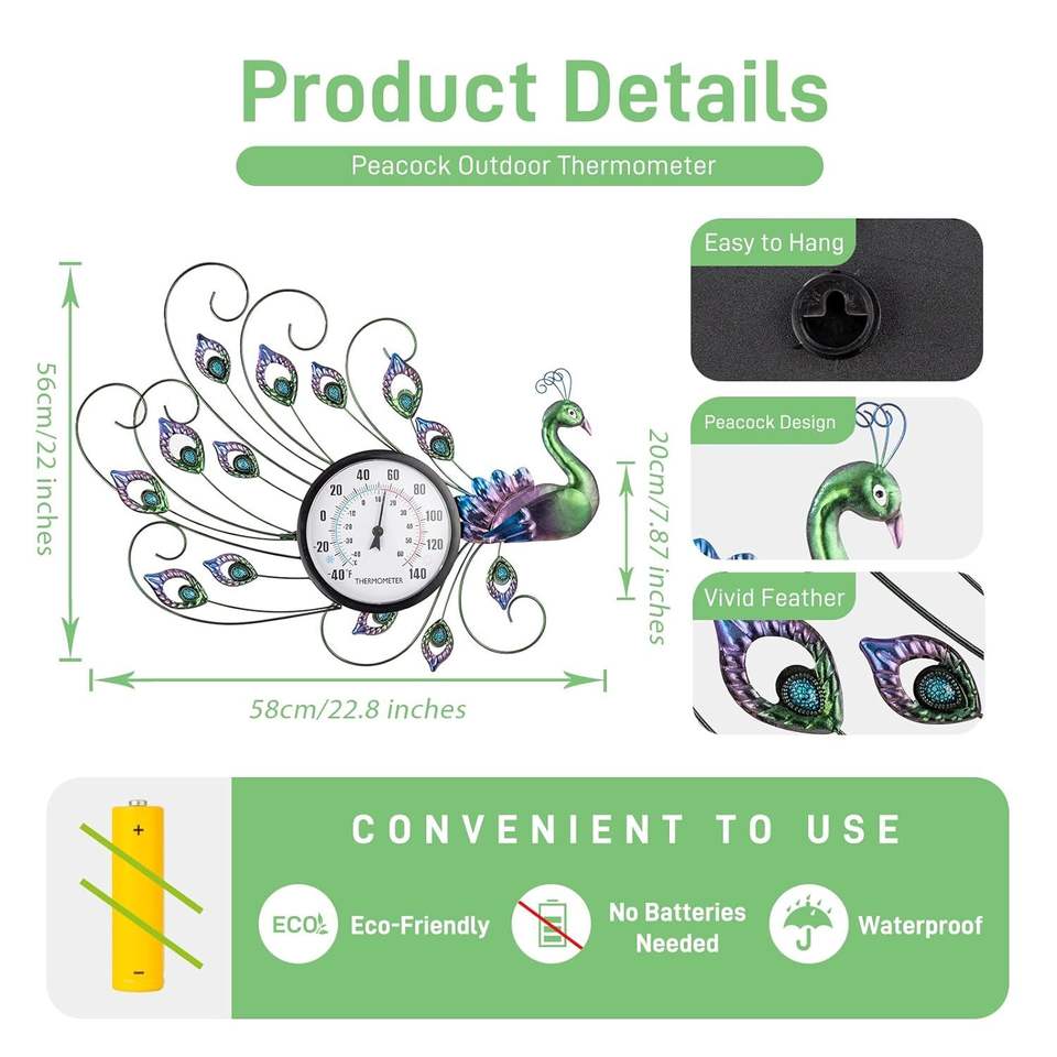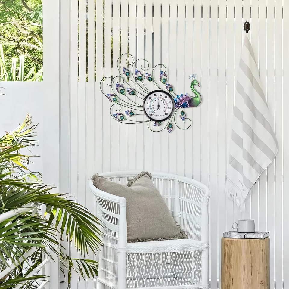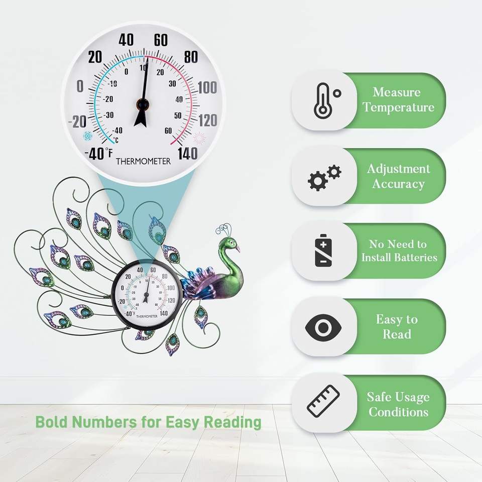 Thermomètre mural extérieur avec hygromètre, thermomètre décoratif facile à lire pour l'intérieur et l'extérieur, pour la terrasse et le jardin