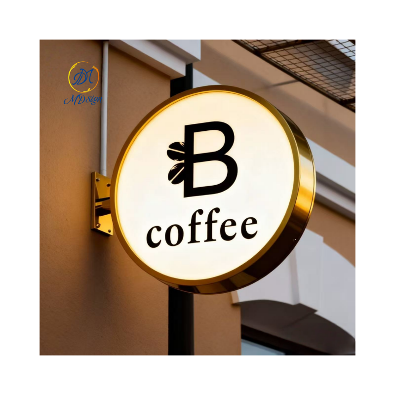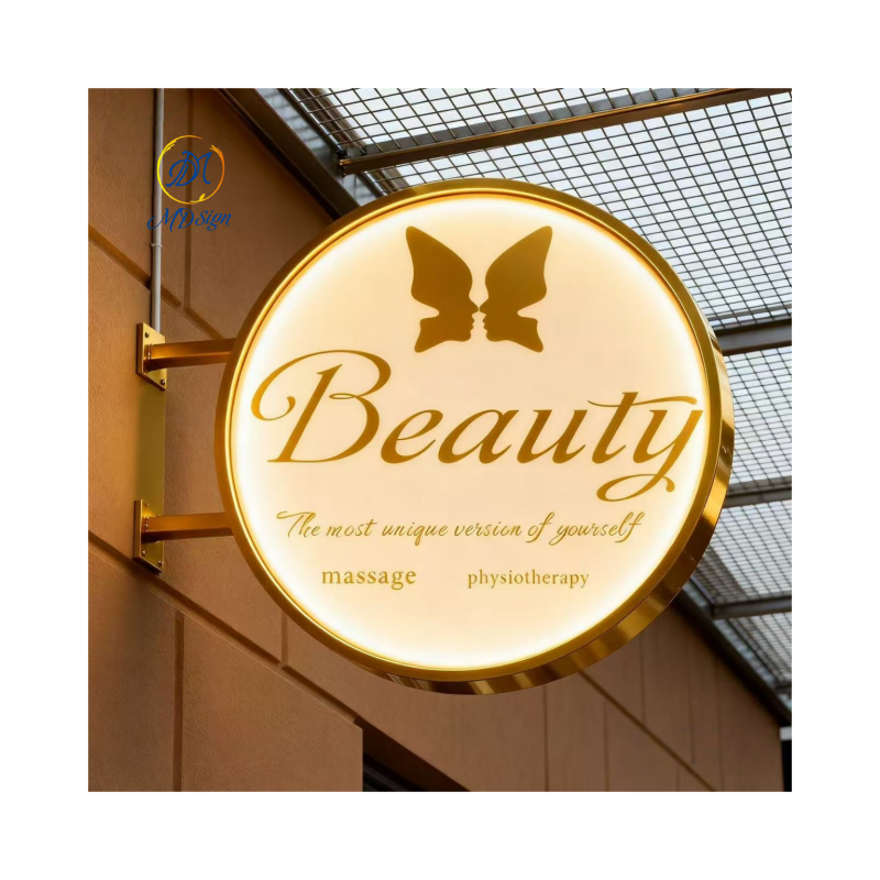 Enseigne Lumineuse LED Ronde Double Face Étanche pour Extérieur, Cadre en Métal Doré de Luxe, Logo Mural Personnalisé Imprimé en 3D pour Salon de Beauté