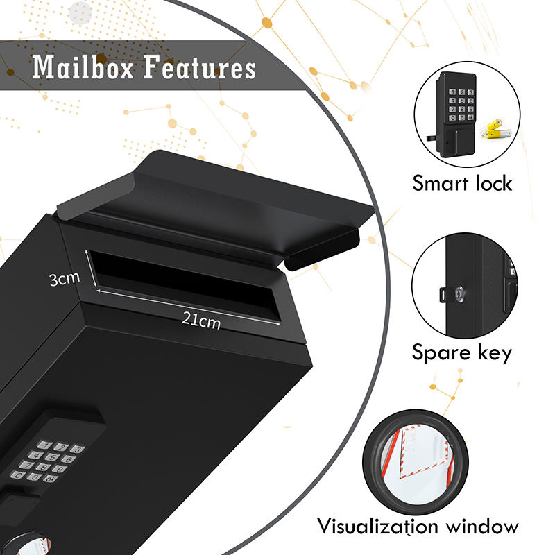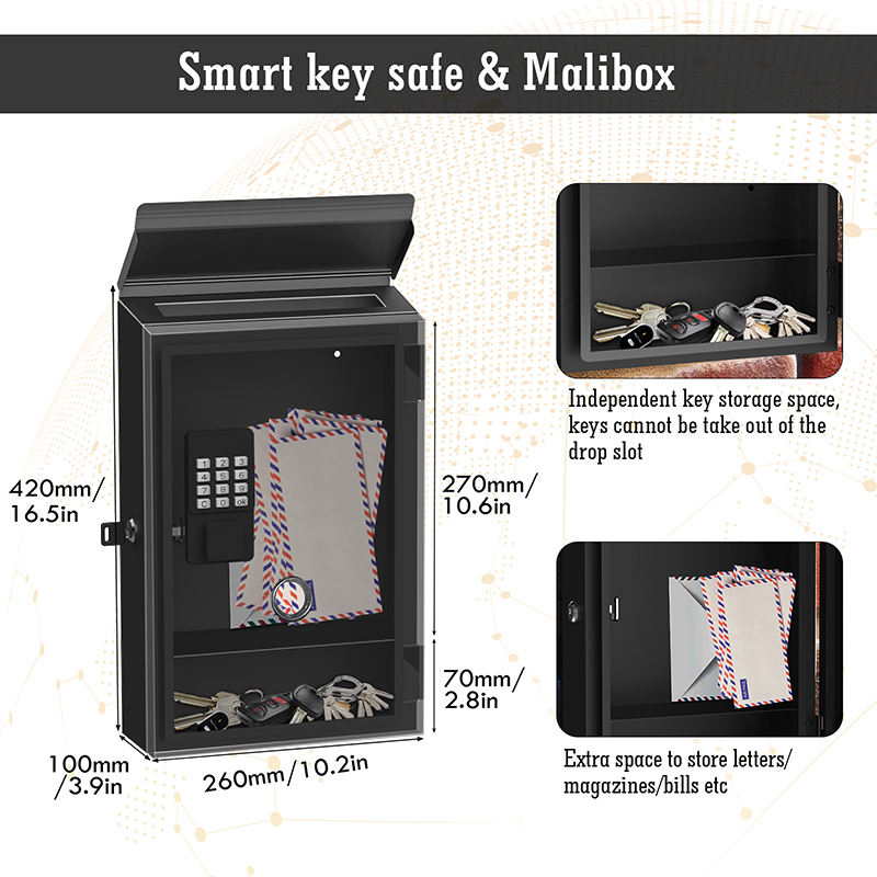 Boîte aux lettres murale moderne et étanche pour l'extérieur avec serrure numérique intelligente Boîte aux lettres en métal