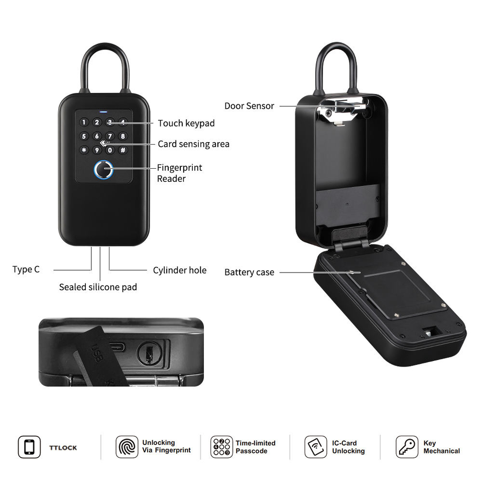 Boîte à clés intelligente imperméable pour l'extérieur, nouvelle, avec empreinte digitale, mot de passe, carte magnétique, écran petit et multifonctionnel, pour les portes