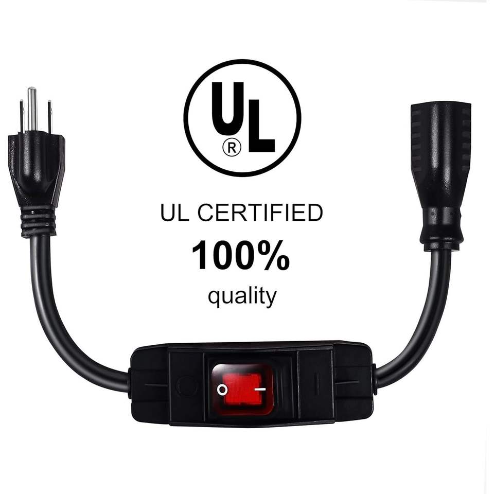 Câble d'extension extérieur étanche avec interrupteur marche/arrêt, robuste, 125 V/250 V, noir, SJTW, 6 pieds, cordons d'alimentation et rallonges