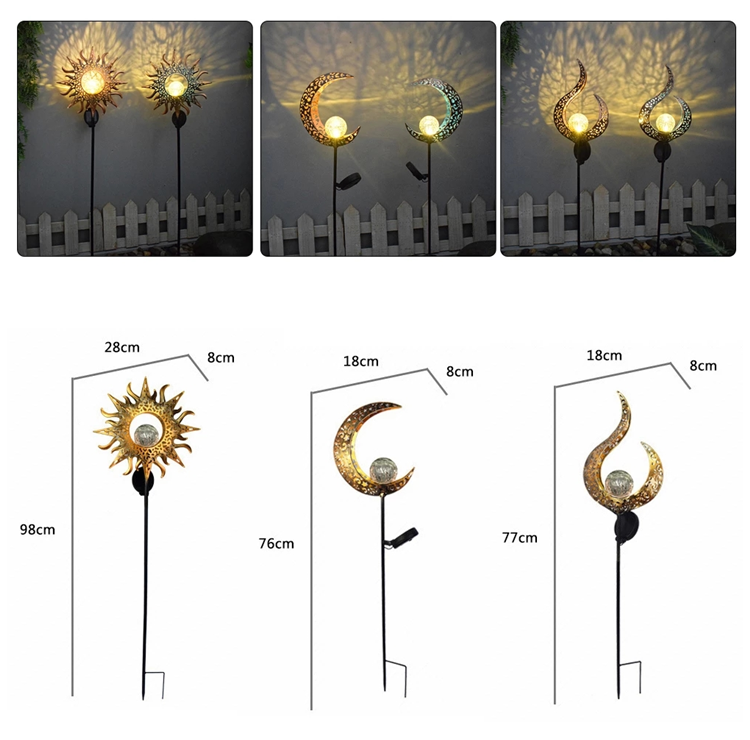 Extérieur Étanche Solaire Métal Fer Lune Lumière Ramadan Festival Décoration Verre Globe Piquet Lampes Jardin Parc Rue Paysage