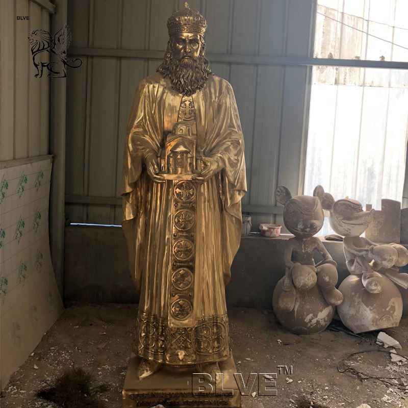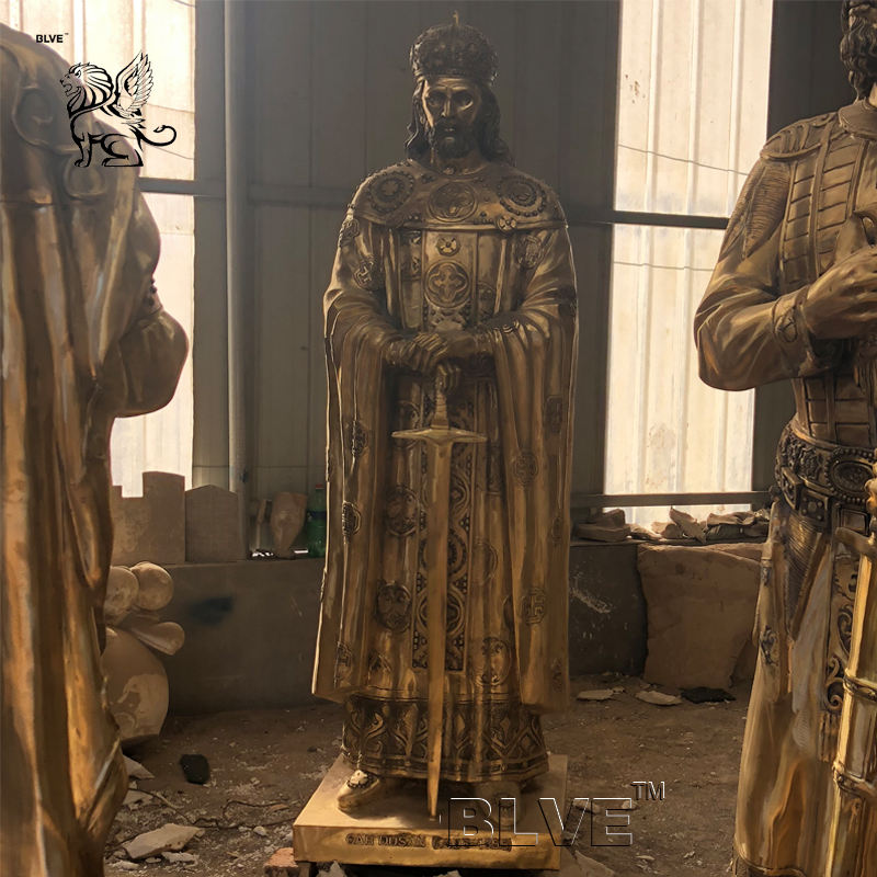 Statues de Charlemagne en laiton de l'Empire carolingien grandeur nature de chevalier célèbre de l'Ouest en extérieur Sculpture en bronze de Charles le Grand