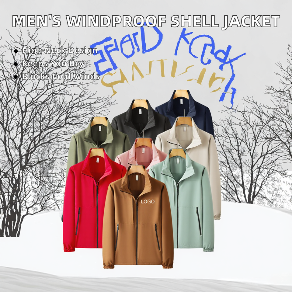 Veste d'hiver d'extérieur unisexe coupe-vent imperméable en softshell fin et souple avec col montant personnalisé pour la pêche, la randonnée et la chasse