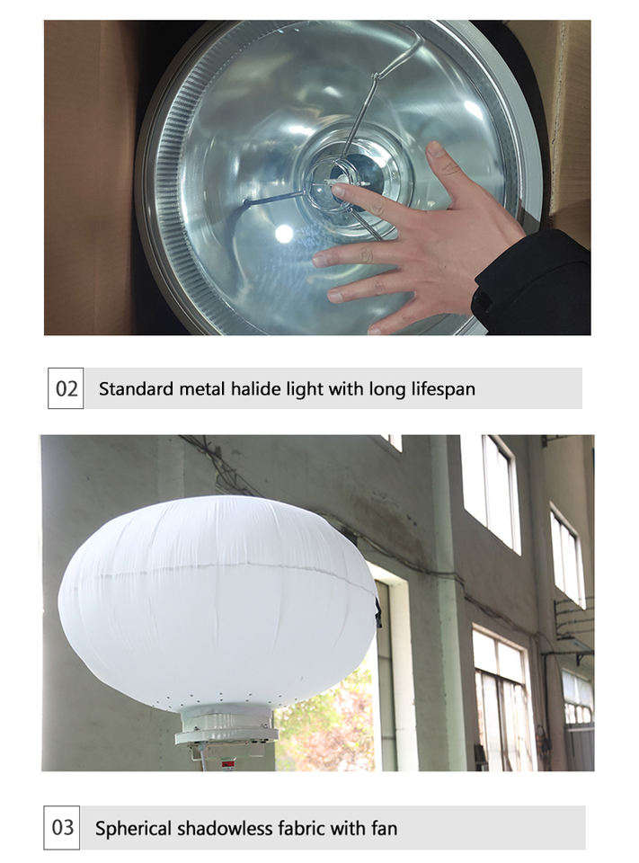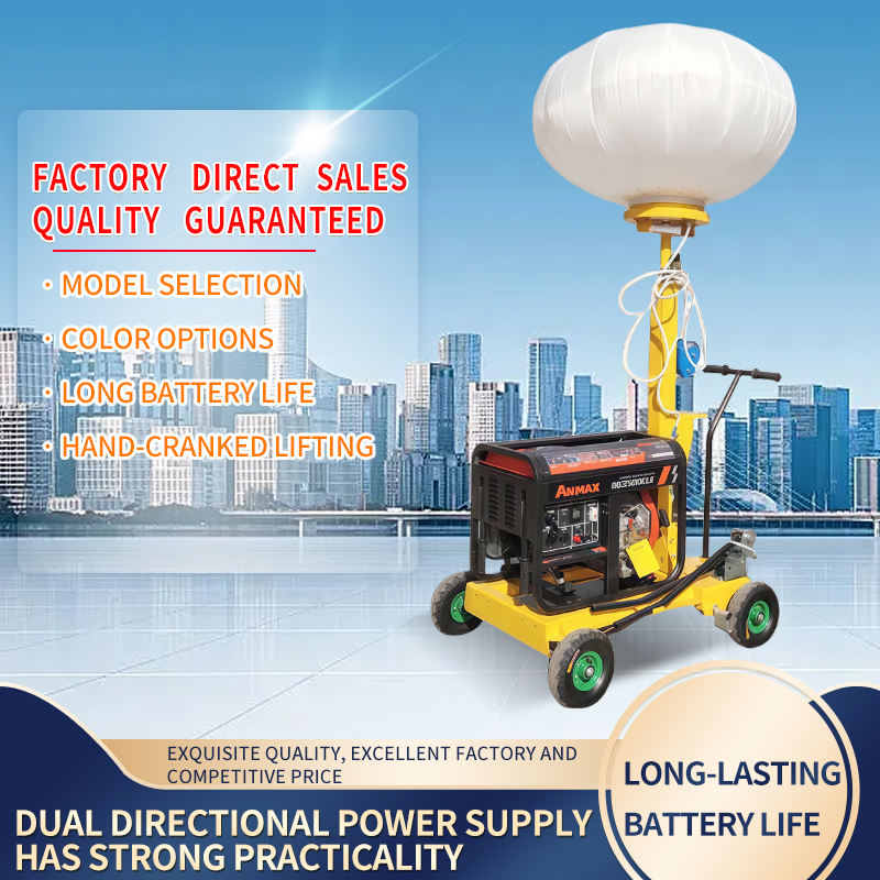 Tour d'éclairage mobile 5m à poussée et levage manuels pour travaux extérieurs, balise lumineuse portable en forme de ballon 5m