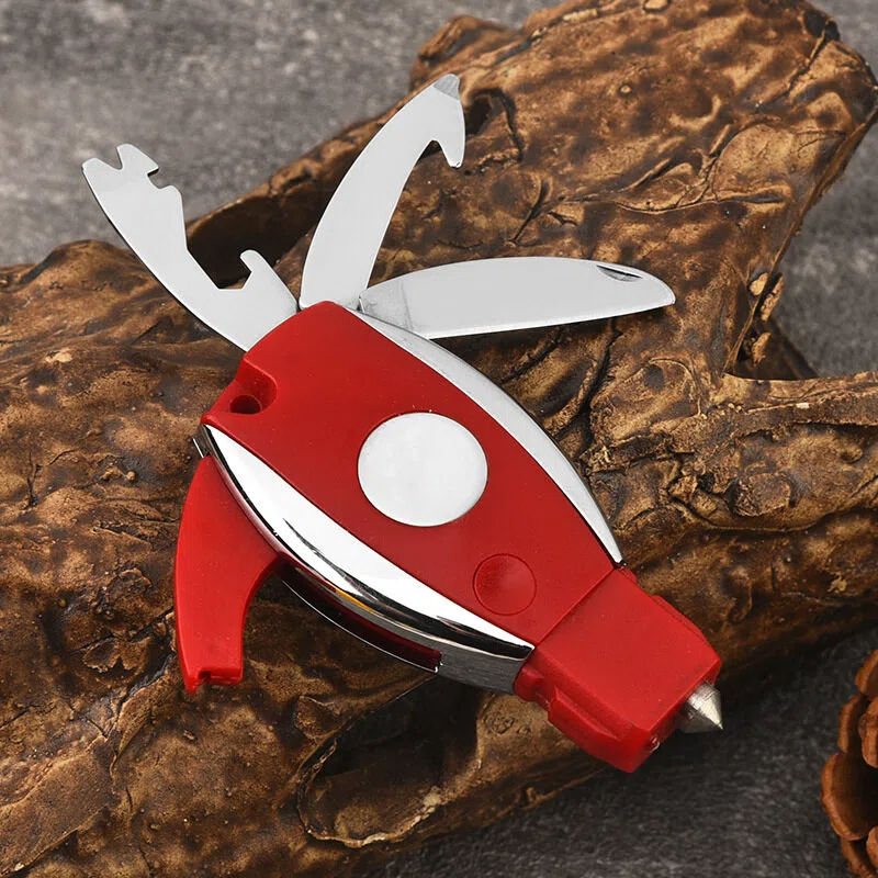 Porte-clés multi-outils d'extérieur, marteau de survie portable, outil de camping léger, sifflet portable, couteau pliant