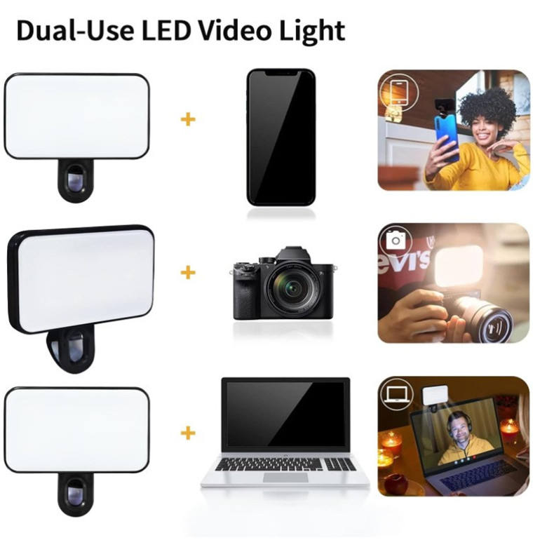 Ju Shell Hui Lampe selfie cube LED mini ABS+PC 3 couleurs, universelle pour smartphone/tablette/PC avec clip – pack de 5, noir