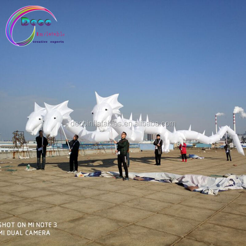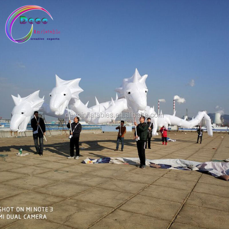 LED éclairage blanc gonflable trois tête dragon marionnette costumeNom du produit