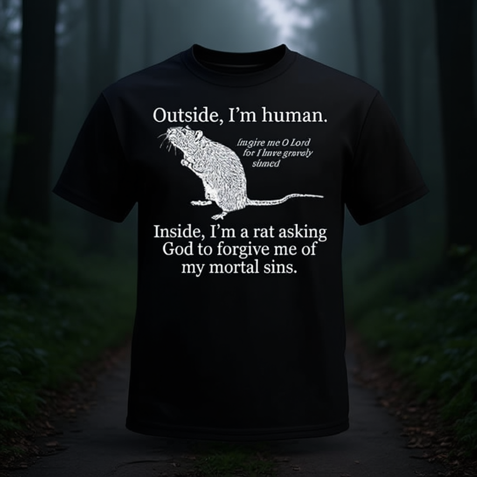 De l'extérieur, je suis humain, de l'intérieur, je suis un rat. T-shirt « Demander à Dieu de m'excuser »