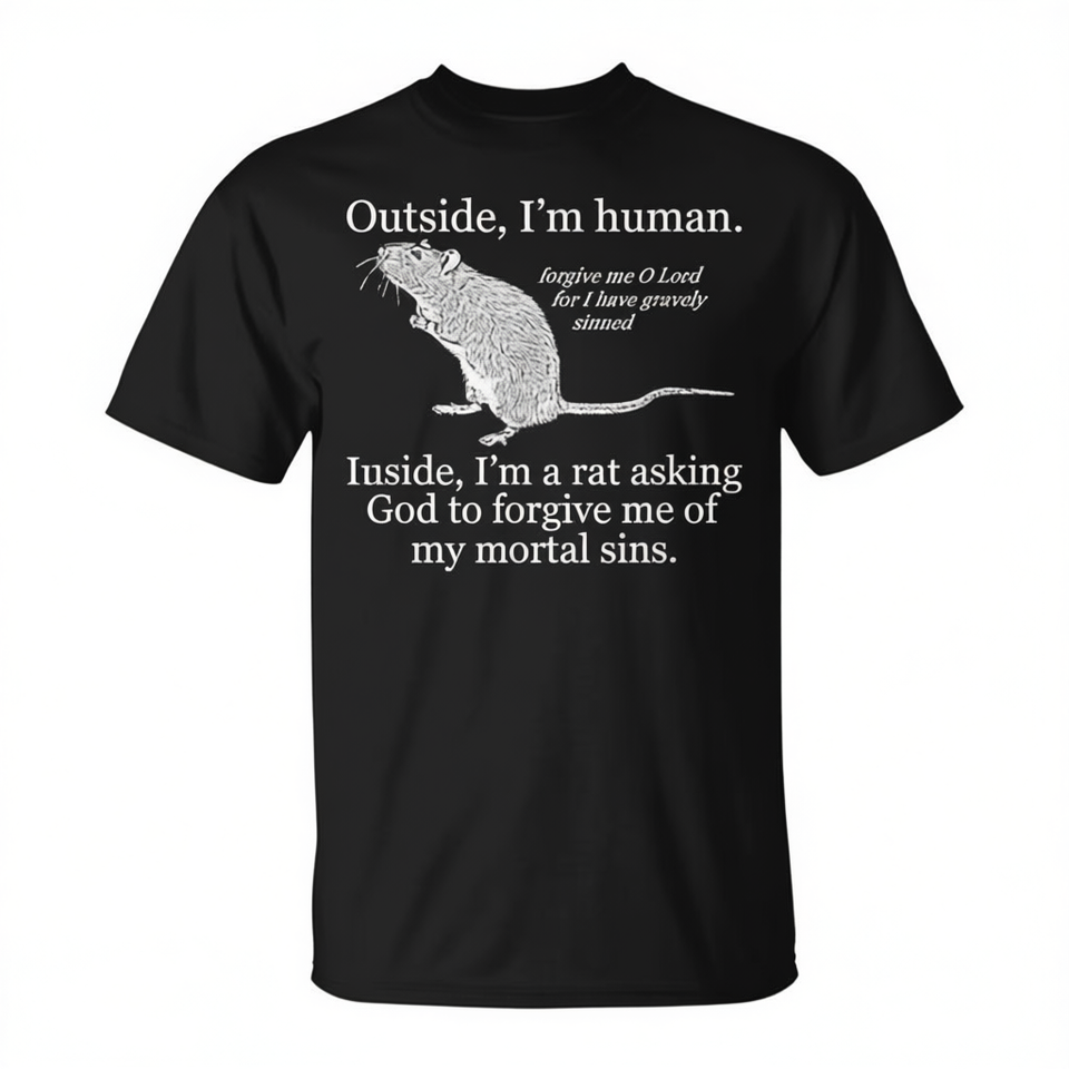 De l'extérieur, je suis humain, de l'intérieur, je suis un rat. T-shirt « Demander à Dieu de m'excuser »