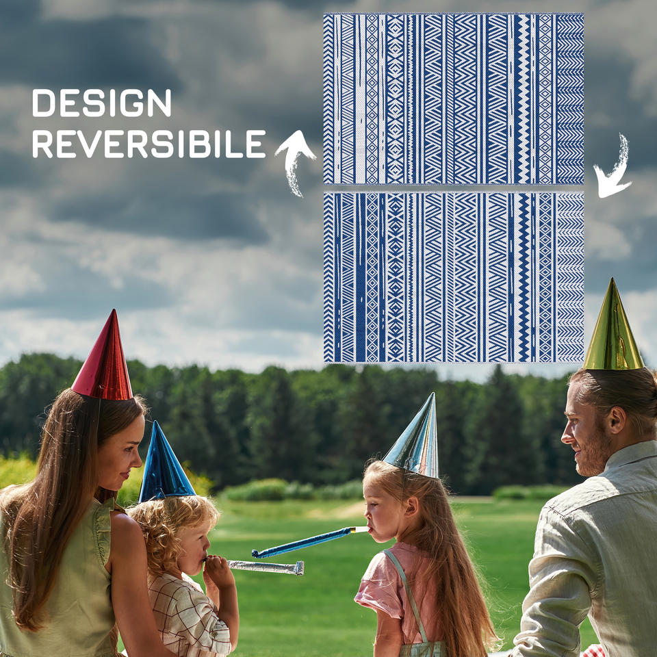 Tapis d'extérieur Outsunny 182x274 cm pliable et réversible, en polypropylène bleu et blanc