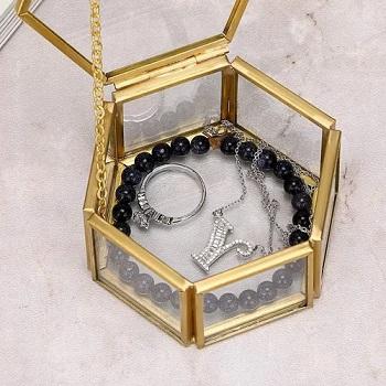 Oval Beveled Glass & Brass Gold Luxury Jewelry Box Gift Box Wedding Ring Watch & Jewelry Packing Storage Box