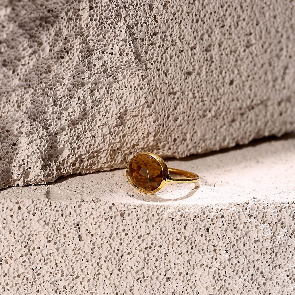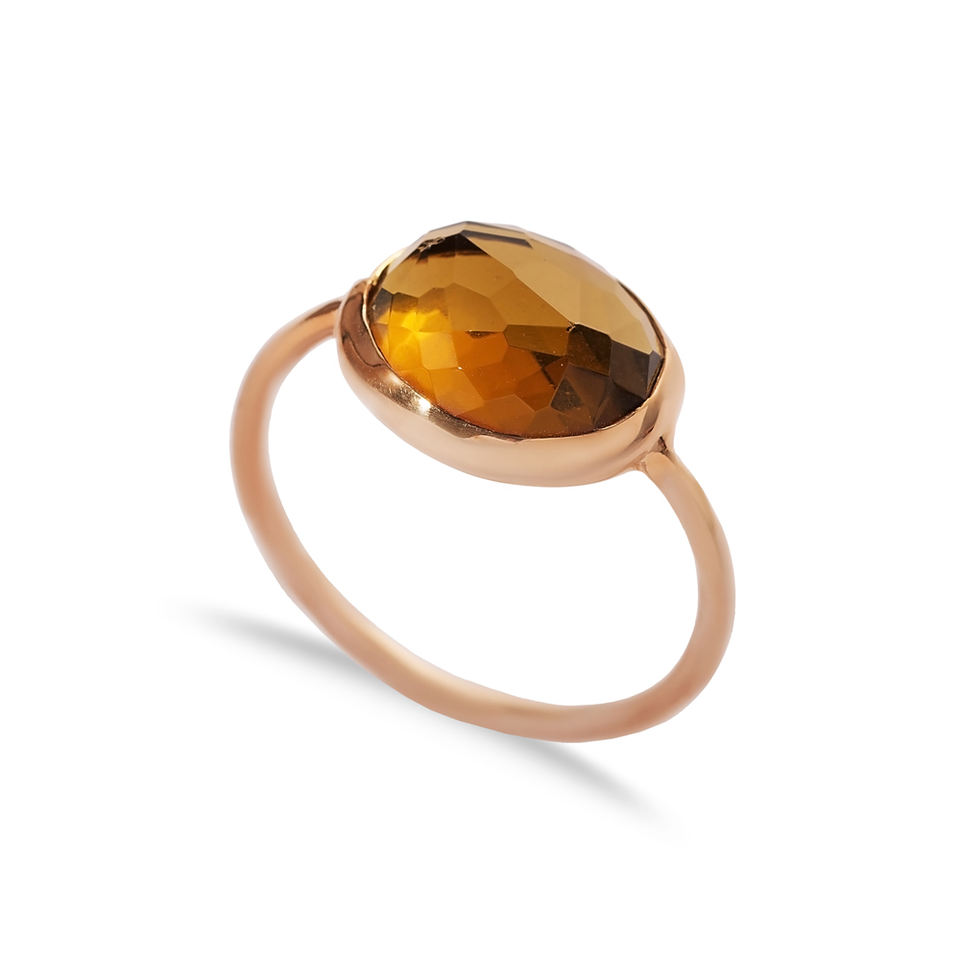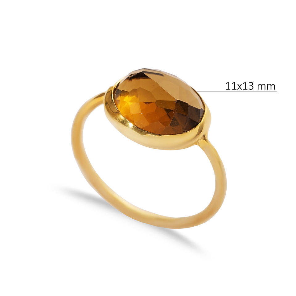 Ovale Brun Quartz Pierre Or Lunette Conception Turc En Gros 925 Bague En Argent Sterling À La Main