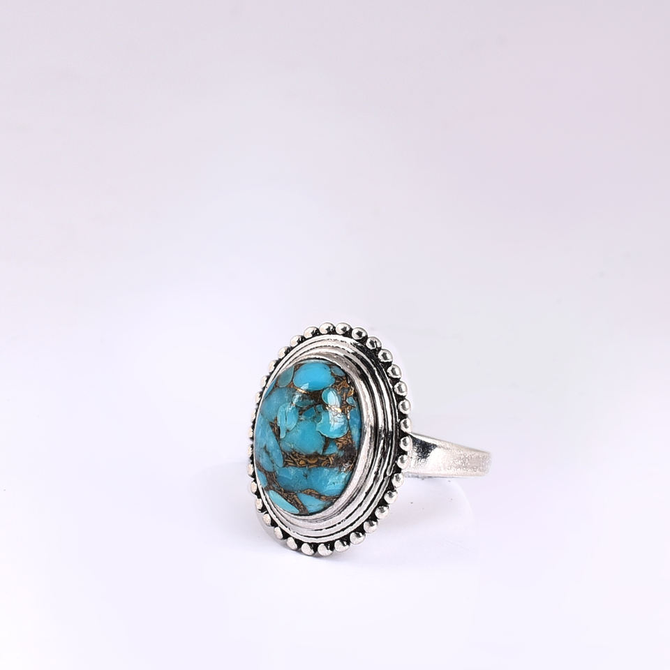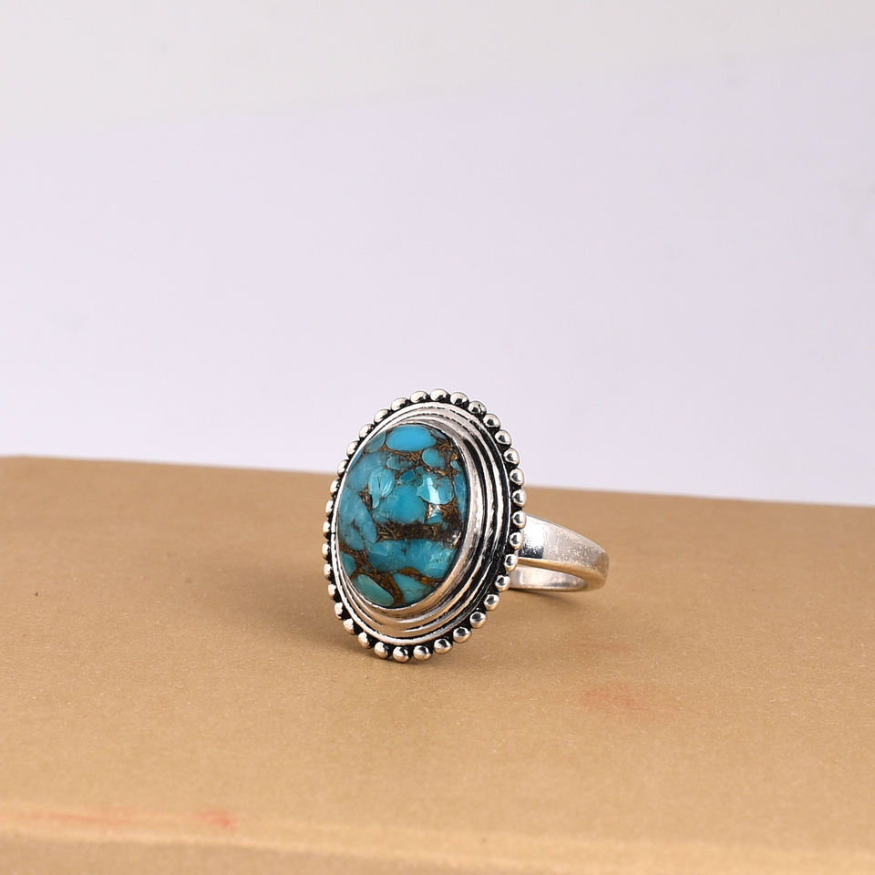 Bague en argent sterling 925 plaqué argent avec serti en turquoise, style classique et tendance, idéale pour les fiançailles, les mariages et les fêtes