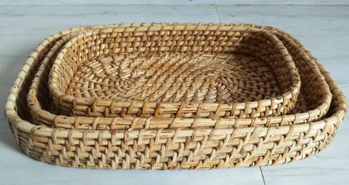 Plateau de service en canne ovale de différentes tailles pour restaurant à domicile, plage ou salon latéral