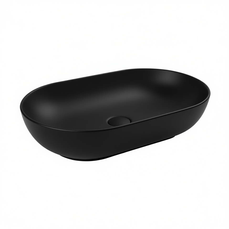 Lavabo de comptoir ovale 61,5 cm noir mat pour salle de bain