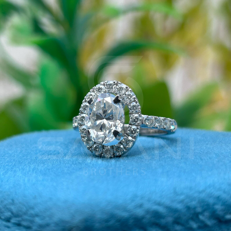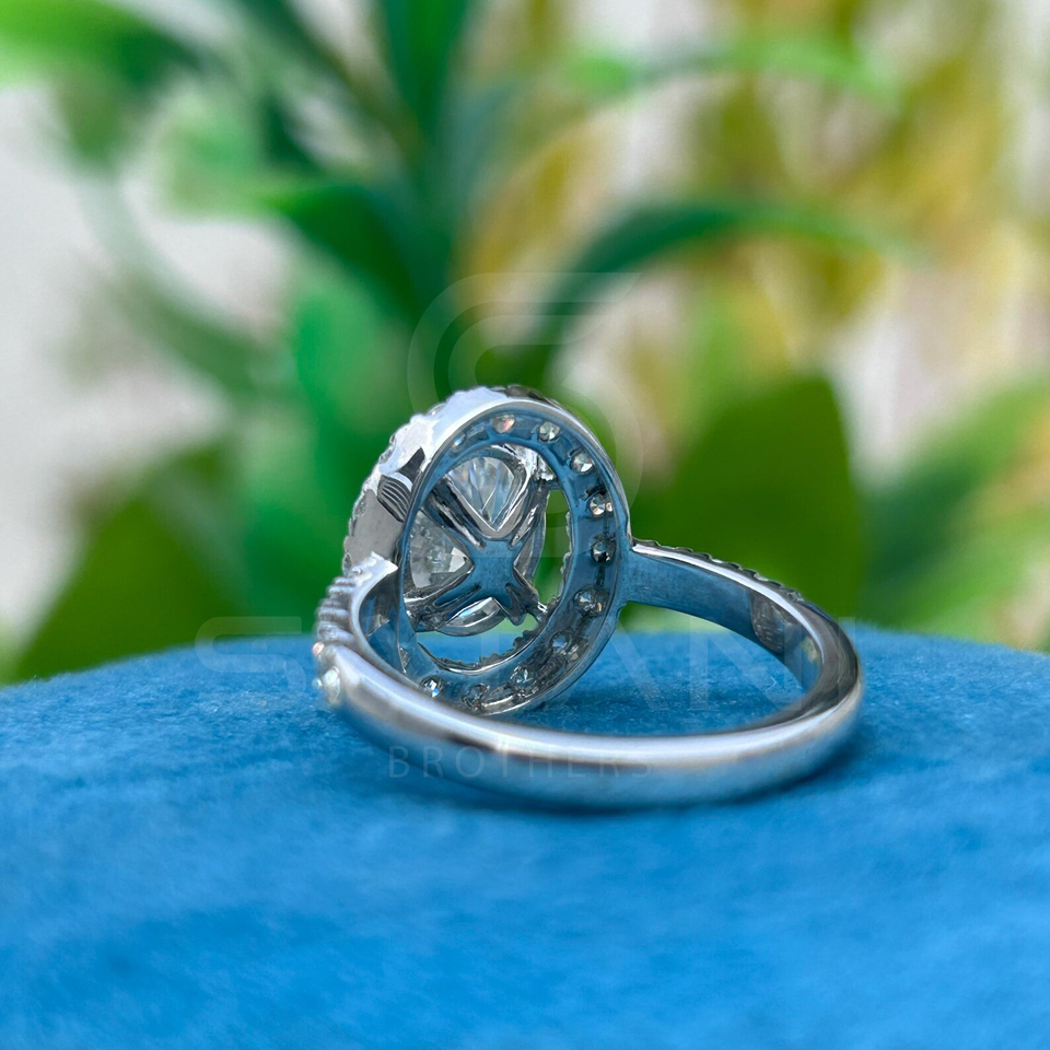 Oval Cut Colorless Moissanite Halo Engagement Ring Elegant Wedding Anniversary Gift For Women Timeless Sparkling Jewelry Design