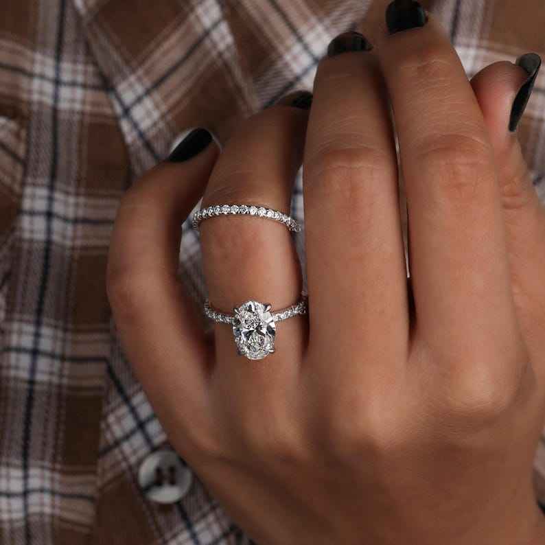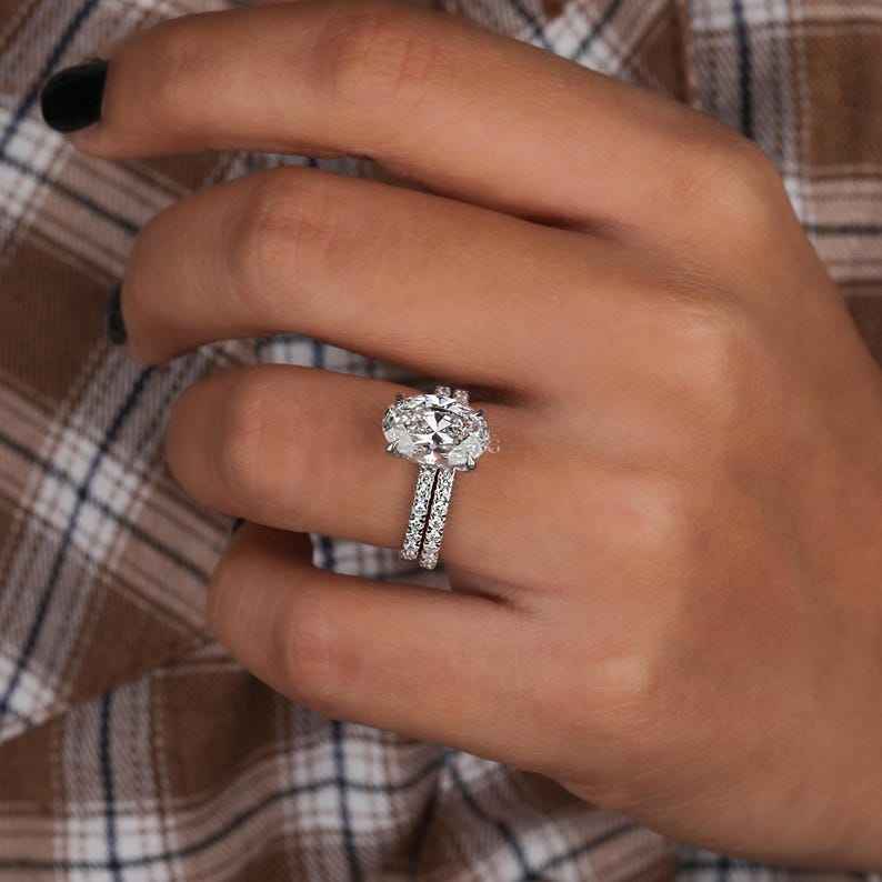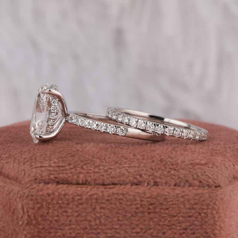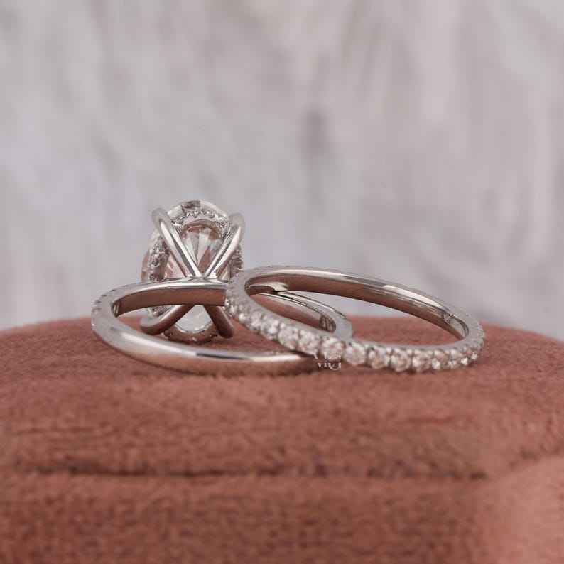 Ensemble de bagues de fiançailles Halo caché en diamant de laboratoire de coupe ovale, cadeau d'alliance en diamant rond assorti