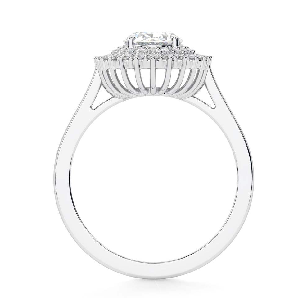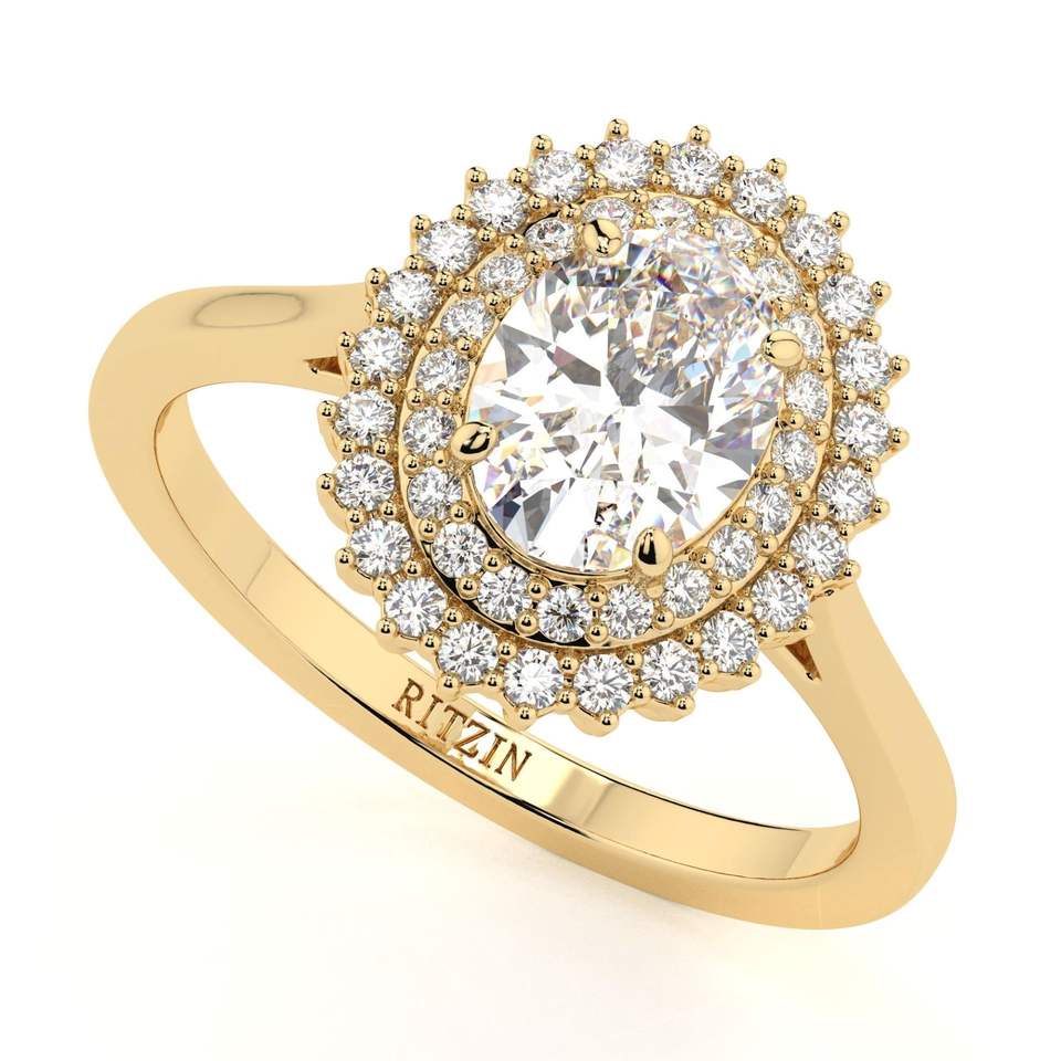 Bague de fiançailles en or rose 14 carats avec diamant de laboratoire taille ovale et double halo, style mignon pour femmes